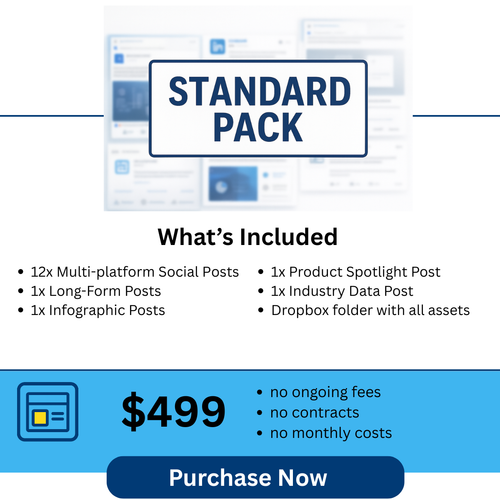 These packs ensure your brand shows up every week with content that builds credibility and keeps you in front of buyers.
